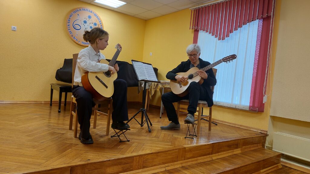 14 ноября 2025г. в 10.00 в ГУО «Детская музыкальная школа искусств №6 г. Минска» состоялось заседание минской городской методической секции по специальности «гитара», на котором перед учителями детских школ искусств города выступил профессор УО «Белорусская государственная академия музыки» Евгений Михайлович Гридюшко. В своём выступление он представил авторскую школу игры «Методика преподавания специального инструмента (классическая гитара) интонационный подход».